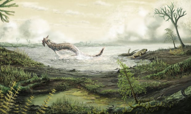 |  Реконструкция ихтиостеги, одного из древнейших известных тетраподов.